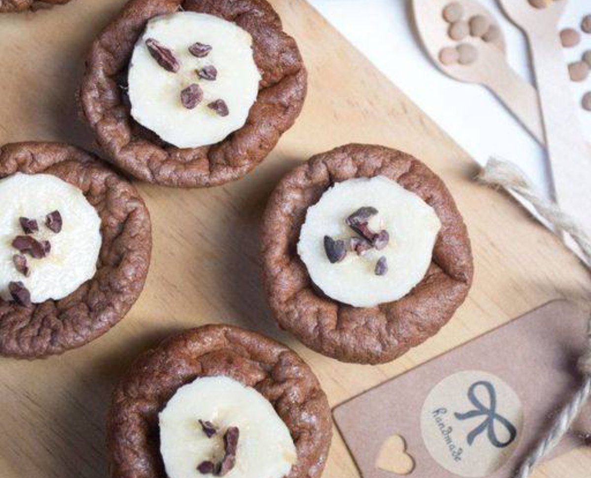 Está vez los hice en forma de magdalenas. Un truco que suelo hacer es guardar una parte pequeña de plátano para decorar y así comiendo la misma cantidad da la sensación que hay más comida