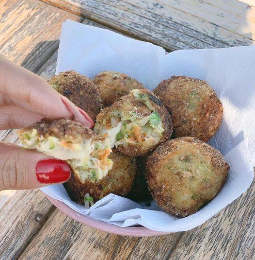 En un bowl mezclar el zucchini con la zanahoria, el perejl, el ajo, la sal y el mix de semillas. Unir bien todos los ingredientes y en la palma de la mano aplastar un poco de la preparación, poner un cubito de queso en el centro y cerrar en forma de bolita. Pasar por el huevo batido y el rebozador. Llevar al horno o freír