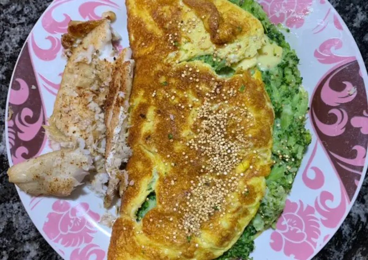 3Cortar el brócoli en trozos y cocinarlo al vapor hasta que este blando. Mezclar en un bowl el brócoli, el casancrem, el ades y salpimentar. Colocar el relleno sobre el omelette.