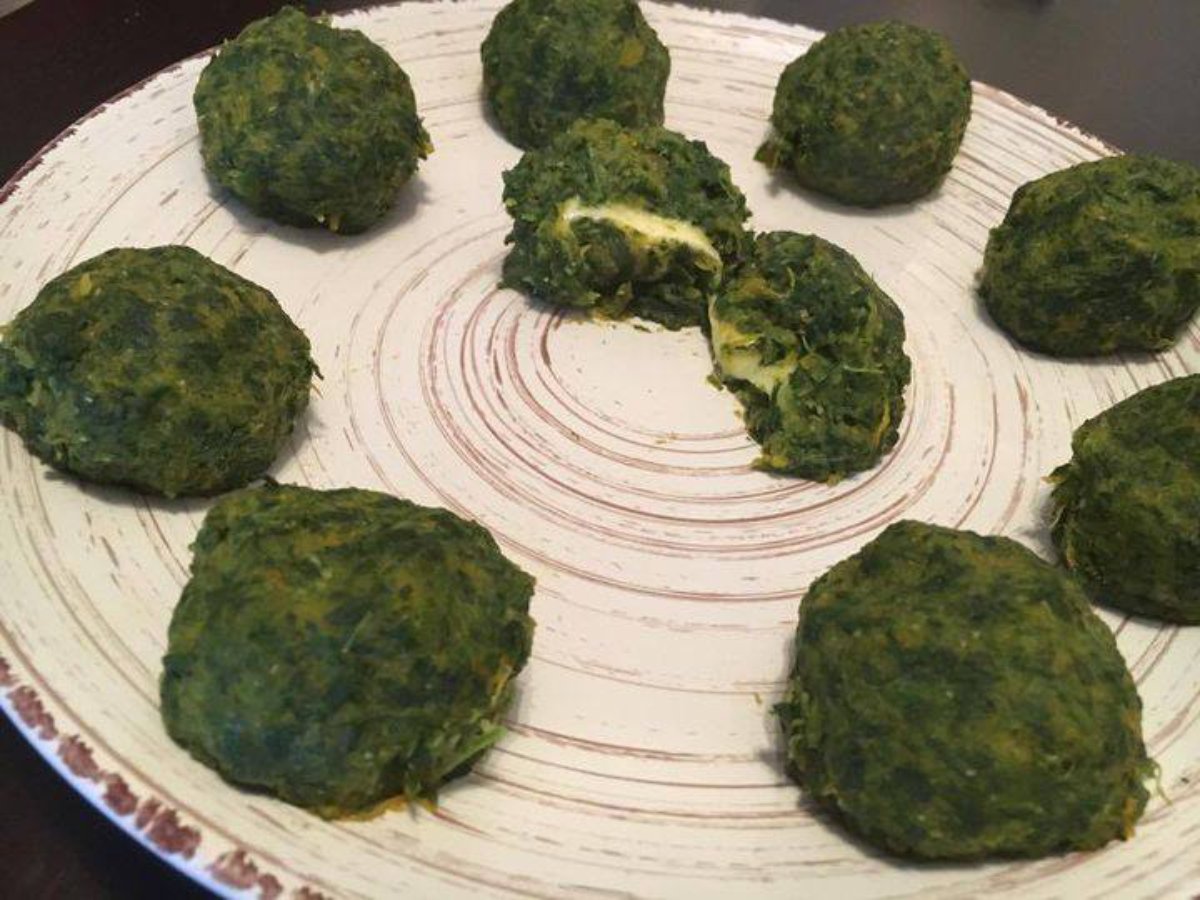 Tomar de a bollitos e ir formando las bolitas depositando en el medio un trocito de muzzarella (que quede del todo cubierto)