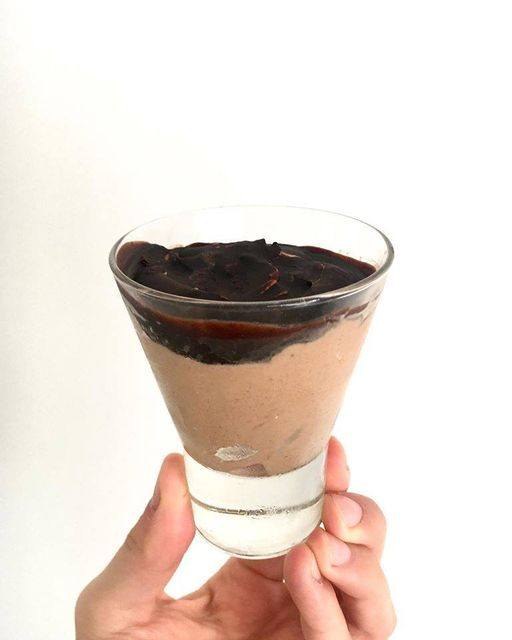Por otra parte derretir 3 ctas. de aceite de coco, agregar 3 ctas. de cacao amargo y 2 sobres de sucralosa. Mezclar