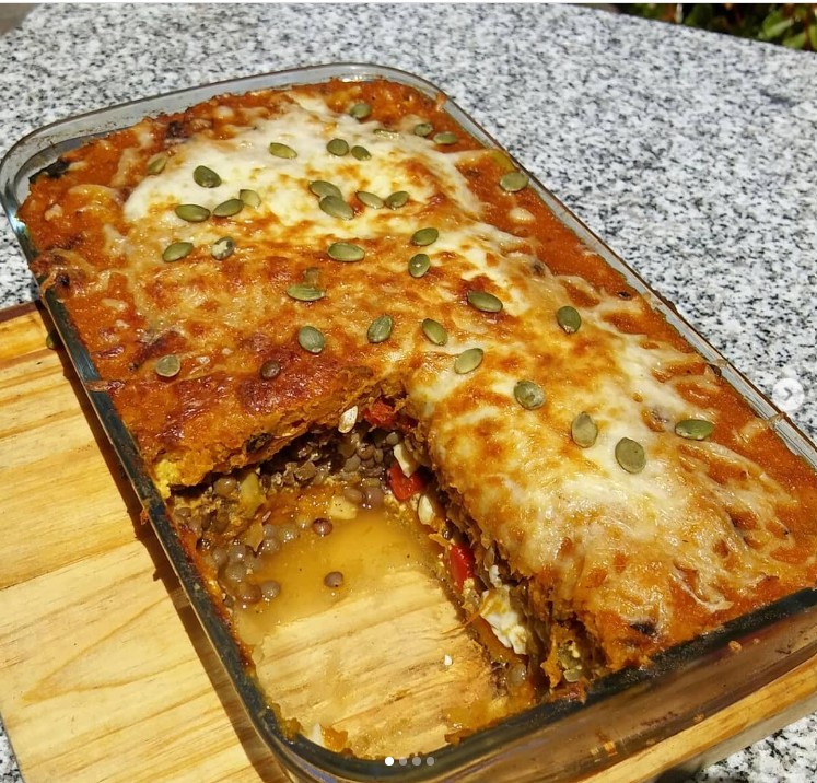 Pastel de zapallo con relleno de vegetales y lenteja