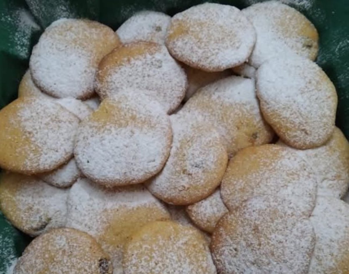 Mezclarlo todo bien y agregar una pizca de sal y las pasas. En una bandeja de horno cubierta con papel de hornear vamos formando montoncitos de masa, que habremos puesto en una manga pastelera con boquilla ancha y lisa. Dejando una separación entre ellos.