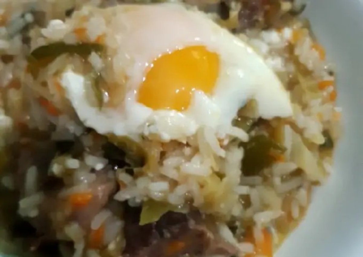 5Un ratito antes de terminar la cocción hacemos unos huequitos en el arroz para agregar unos huevos crudos. Los dejamos cocinar con el vapor o el calor de la olla.