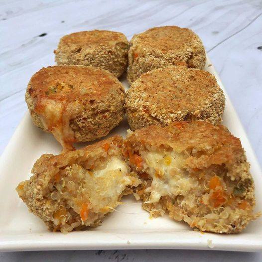 Hacer bolitas con las manos, colocar un trozo de queso fresco en el centro.