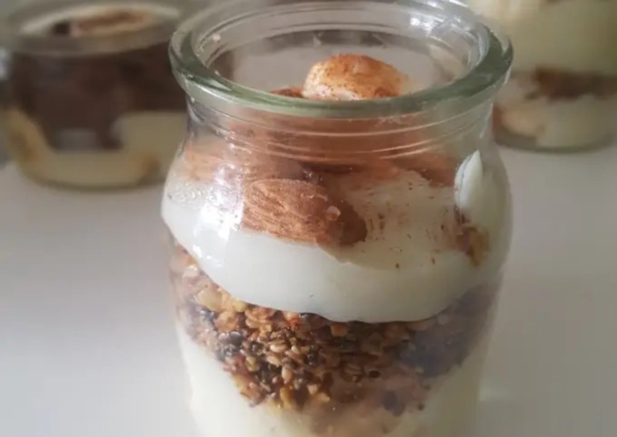 a elección: frutas secas, semillas, granola, galletitas molidas