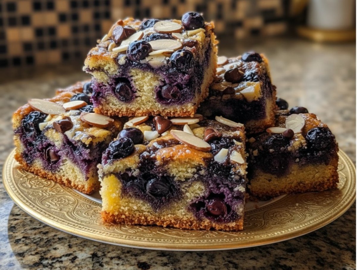 Vierte en molde cuadrado y espolvorea almendras encima.