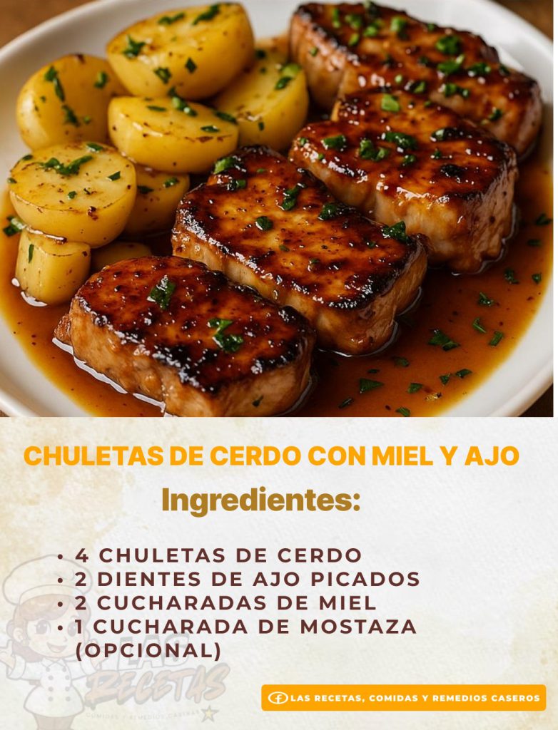 Hoy te traigo una versión que une lo mejor del hogar con un toque de restaurante: chuletas jugosas, caramelizadas con miel, con un fondo aromático de ajo dorado . ¡A preparar el delantal!